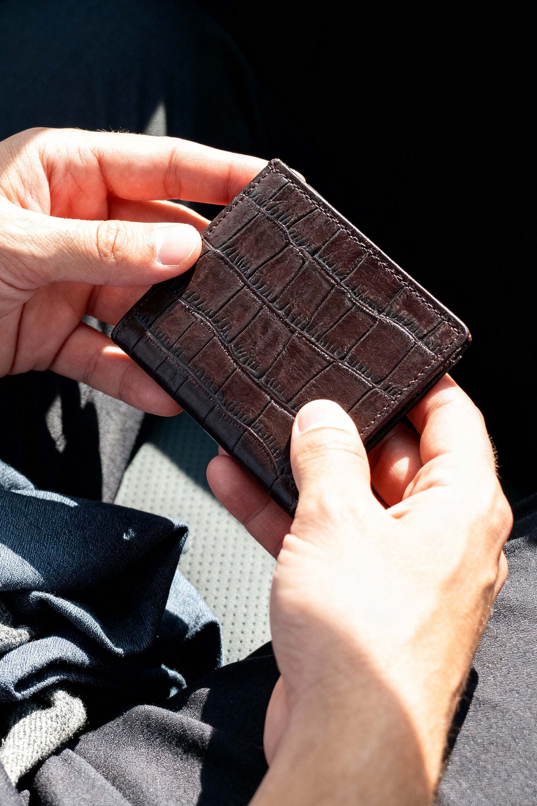 This chocolate brown note wallet has a modern design. This durable note wallet is made...