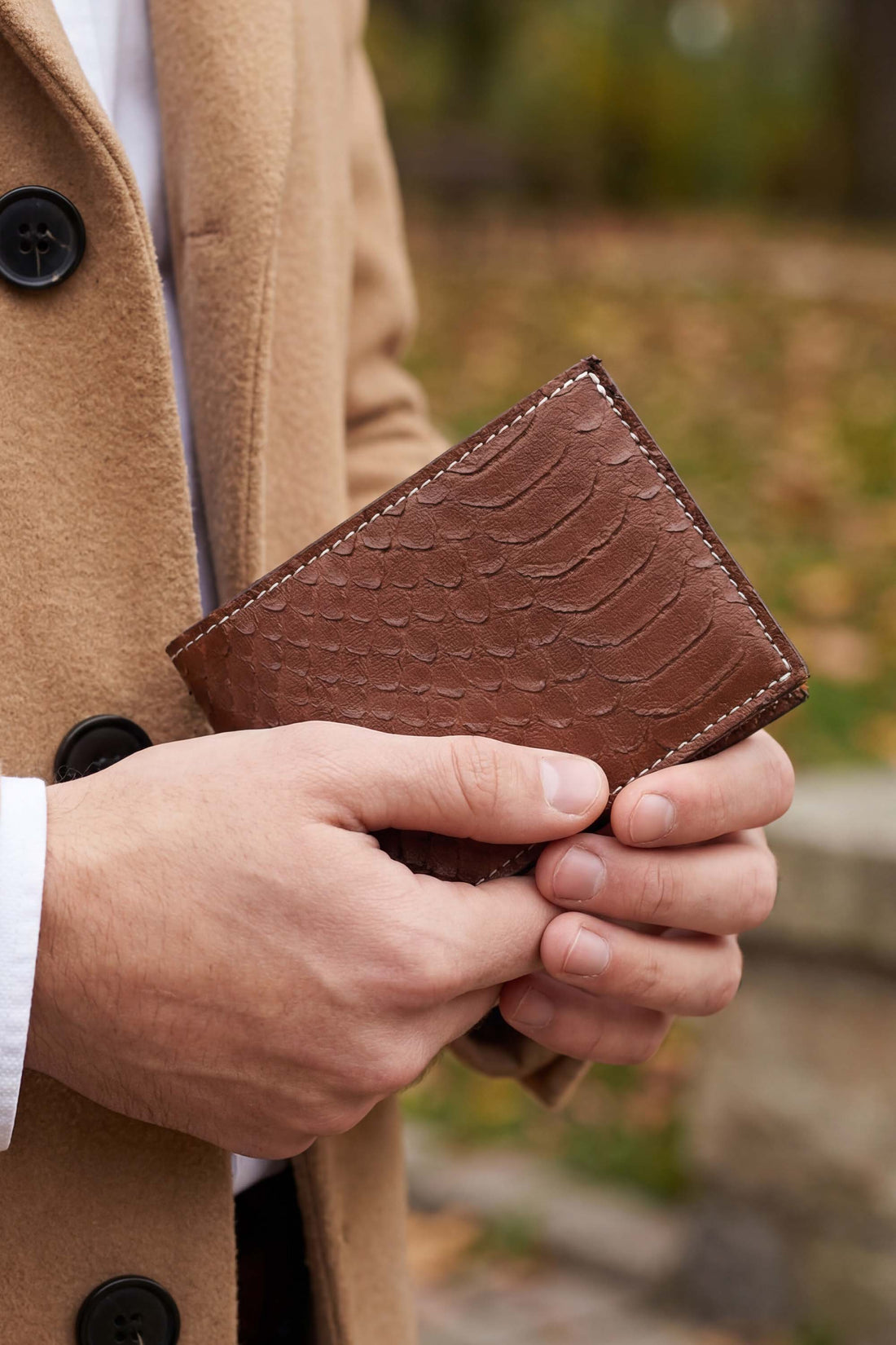Reflecting an exotic vibe, this wallet features snake-textured cow leather that feels as good as...